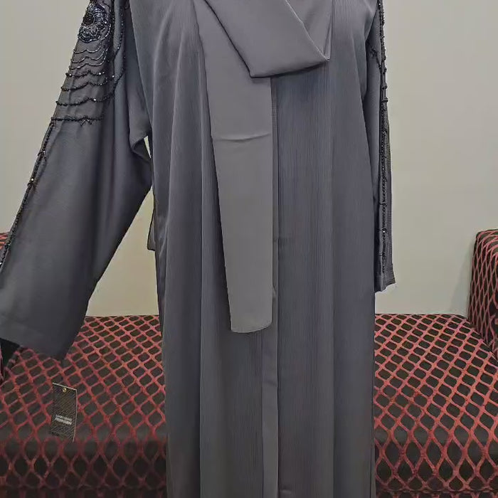 A1522 Crinkle Nada Abaya - Grey / 56 (L)
