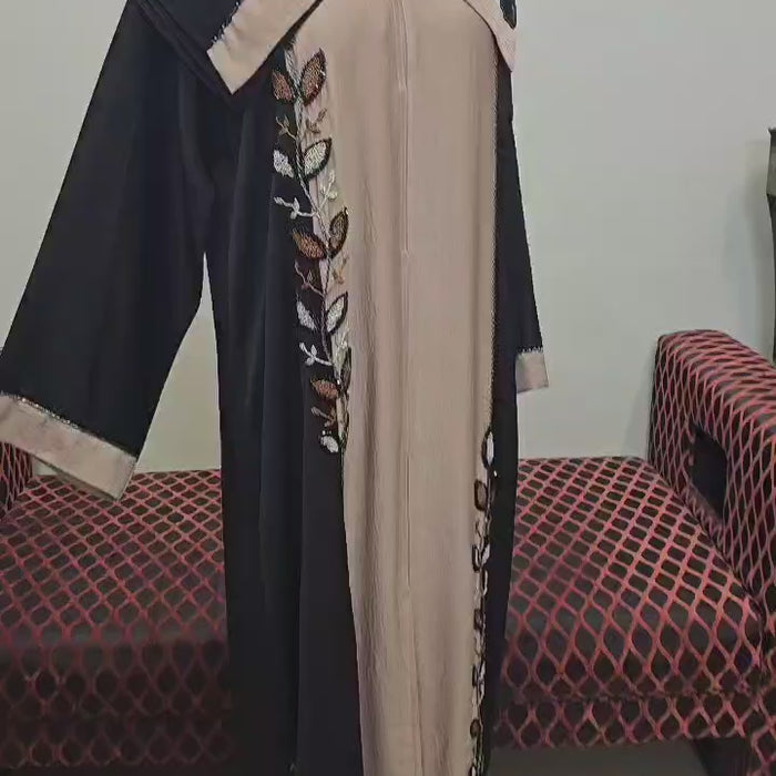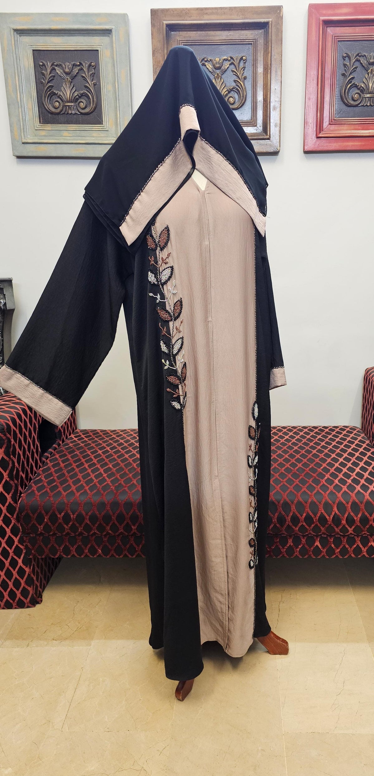 A1617 Hareer Maksoor Abaya - Black/Beige / 56 (L)
