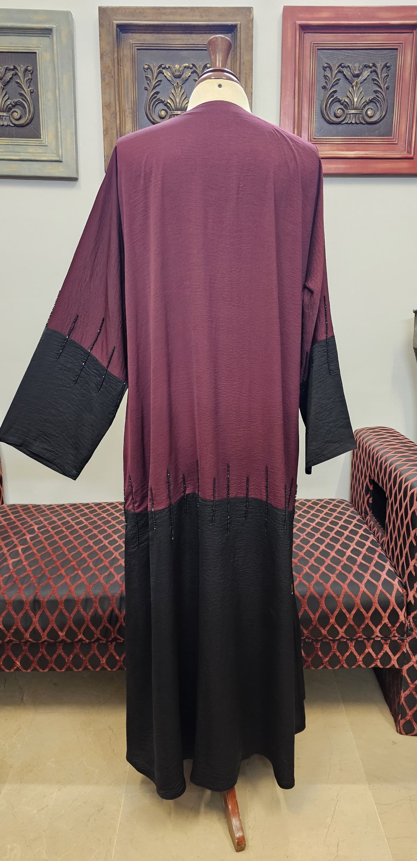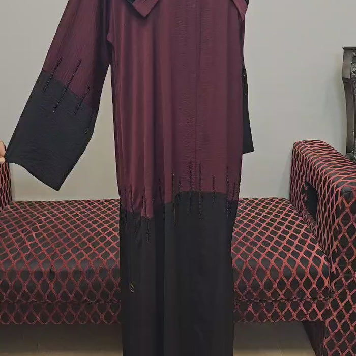 A1632 Hareer Maksoor Abaya - Black/Maroon / 56 (L)